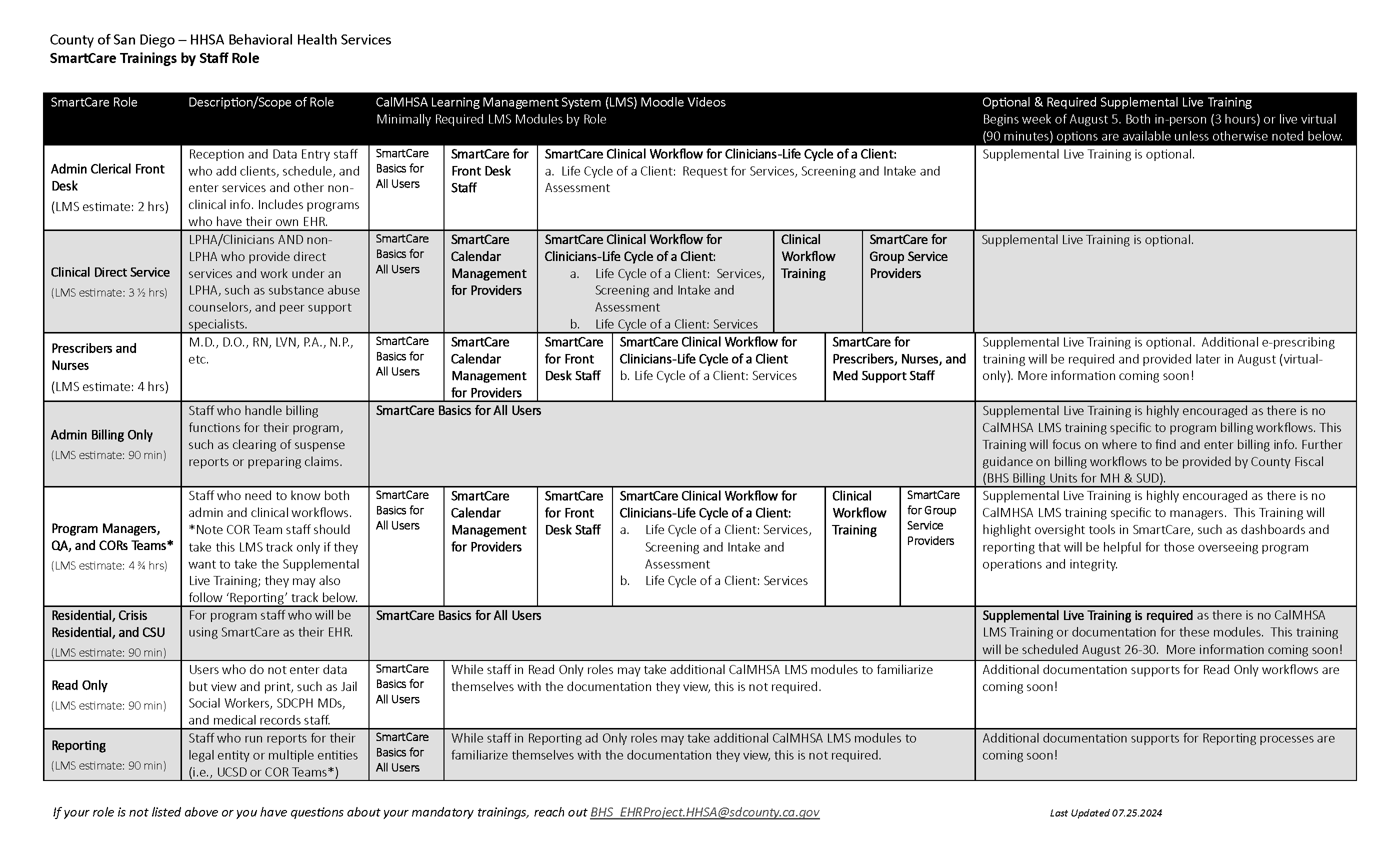 Once you have completed all required CalMHSA LMS Modules for your role, visit RegPack to register for additional training.